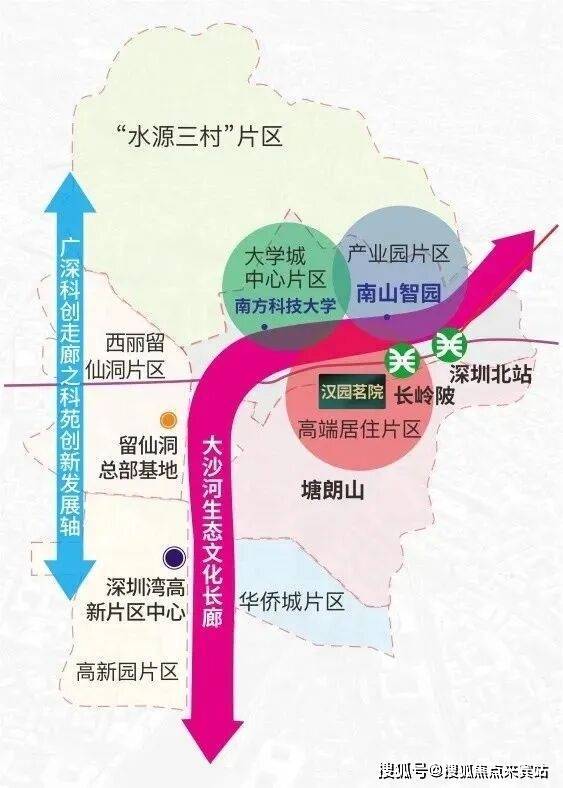 大沙河创新走廊:作为产学研全链条覆盖的“产业发展黄金轴”,串联留仙洞总部基地、大学城、深圳湾超级总部基地,汇聚深圳最强的经济与科研实力。