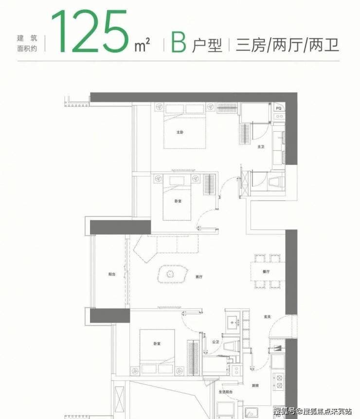 125㎡三房:户型多样,不同朝向均有采光。设置入户玄关,兼具隐私和收纳功能。飘窗和阳台拉开居住视野,主卧私享功能完备。LDK一体化设计打造无边界、社交化的餐客厨系统,让居民在烹饪、用餐和娱乐中都能感受到家的温馨与舒适。