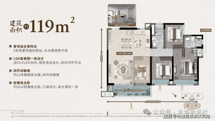 :LDK空间近50㎡,可改造为“四房轻奢户型”,灵活空间设计(可房可厅),北滘唯一实现“119㎡享143㎡尺度”的户型;