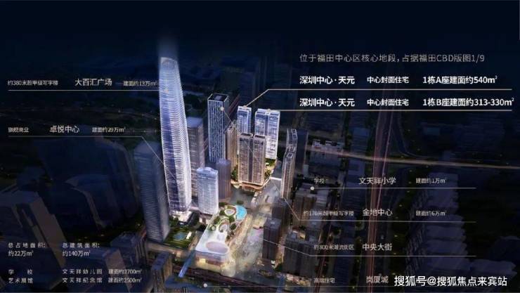 深圳中心天元项目占地面积约22.3万㎡,总建筑面积约140万㎡。规划有约21万平住宅及公寓、约17万平2栋甲级写字楼、约29万平商业。高端商业—“One Avenue卓悦中心”、170米高的写字楼—高金地中心,目前都已投入使用。