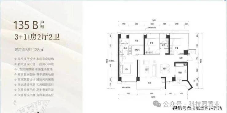 135㎡:横厅格局,南北双阳台设计,9.8㎡南向主阳台,三个房间面积分别达到9/11/15㎡,主卧带衣帽间和卫生间,舒适度非常好。