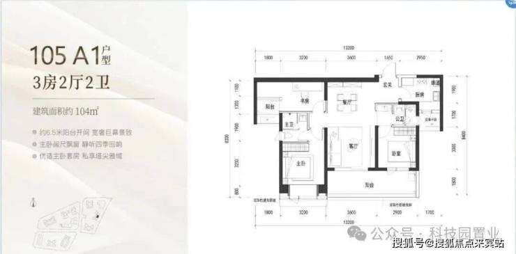 3️⃣四单元03号房105 A户型,9.5-10.6万/平方米