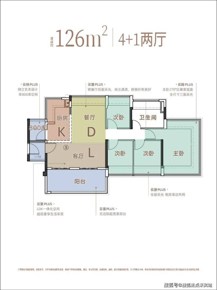 约126㎡4+1房,入户同样赠送800库收纳空间,拥有超豪华尺寸客厅,三间卧室朝南,+1空间改造性大,多口之家改善首选。