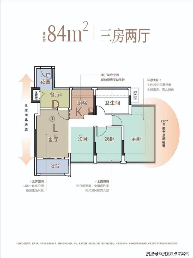 户型设计合理:推出83-126㎡新规户型,得房率较高,部分户型四开间朝南,主卧带270°环幕视野,空间利用率高。