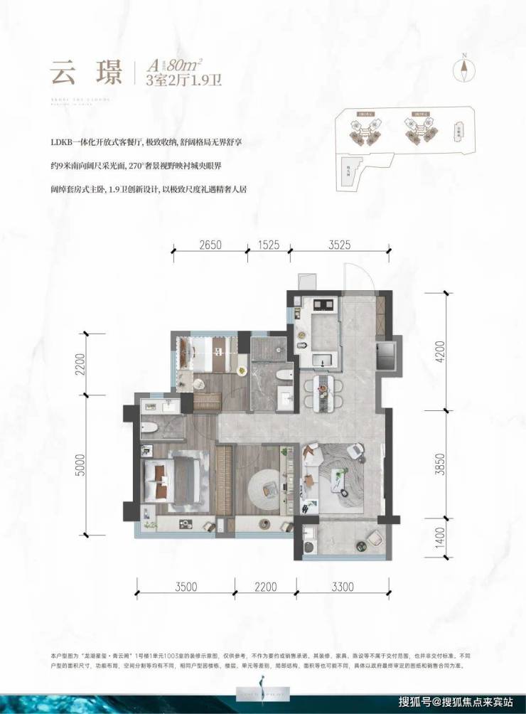 高质产品:建面约80-113㎡精质美宅,创新户型设计,片区内唯一80平内1.9卫创新设计;片区内唯一90平内南北通透户型设计;113平户型豪华主卧三面飘窗,270°全景环幕视野,实际使用率达86-90%,更大居住空间,更高舒适度;