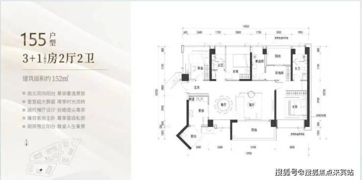 户型面积:主力户型为105-155平方米的三至四房,部分户型使用率高达90%以上