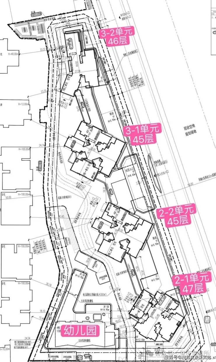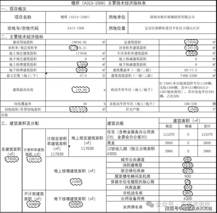 规划建设4栋(45-47层)超高层住宅和1所幼儿园,该地块为纯商品房,总户数为1098户,机动停车位1309个。