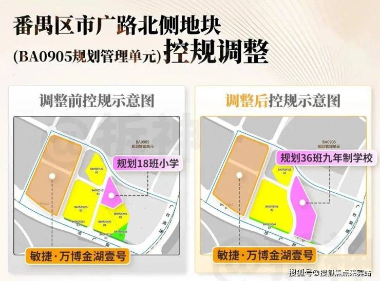 项目配建12班幼儿园,规自局公布调规方案,市广路北侧地块调规为36班九年制学校。(市广路北侧地块控制性详细规划局部调整批前公示)