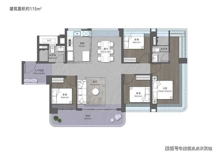 115㎡创意四房两卫,搭配大面积入户花园,归家即享井然有序的从容
