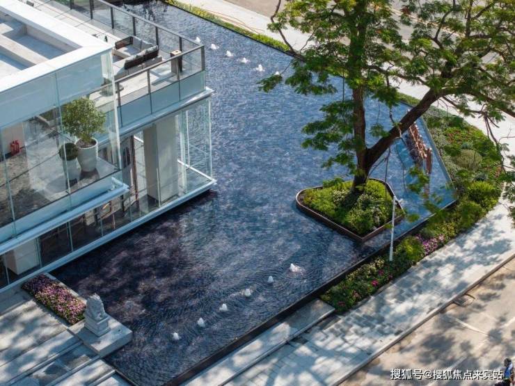 在前厅,水景与凤凰木、玻璃盒子,形成层层递进的关系,循序而来。