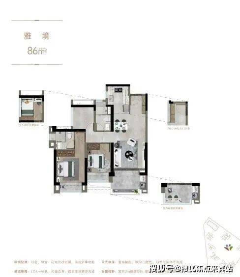 ⚒近100项人性细节体验 造就荔湾人居新名片】·项目全球严苛选材,选取科勒、博世等一线大牌品质奢装,媲美五星级酒店装标,从玄关客厅到主卧,无微不至的细节考量。·人性化黑科技体验,以“恒温、恒湿、恒氧”等高标准智能体系,从多维度改善居住环境,打造健康舒适的全龄段宜居生活质感