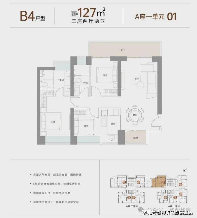 以约80-144㎡2-4房天幕奢居,回应城市先见者的至极向往;以四梯四户/四梯五户、丰富多元的户型构成、方正舒适的空间设计及户户双阳台等,成就共鸣时代的中芯圈层首选奢雅住区。
