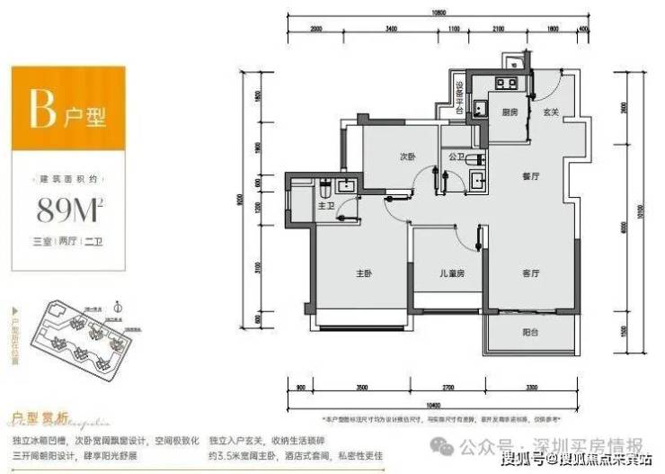 独立冰箱凹槽,宽阔飘窗设计,空间极致化