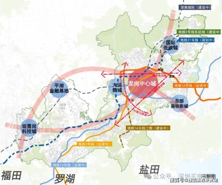 在龙岗发展一路向东的大趋势下,依托地铁3/16/14号线的轨道交通效能,“东部副中心”强势崛起,地铁16号线东轴方向成龙岗中心城外拓首站,“一芯两核多支点”战略赋能、超百万方城市更新推进,多重势能叠加,区域未来可期。