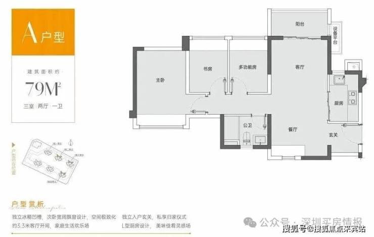 建面约79㎡实用三房