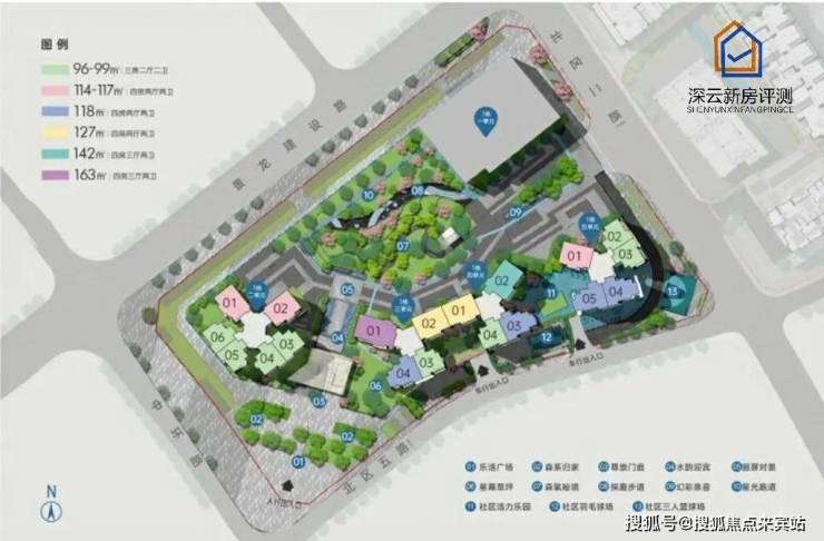 01-01地块占地约1.93万平方米,总建筑面积约23.8万平方米,容积率为8.81,绿化率为40.01%。该地块由1栋40层的办公单元和4栋56层的住宅单元,还规划有公交首末站。地块总规划980户,住宅单元设计为3梯4户、3梯5户和3梯6户,规划停车位1533个。