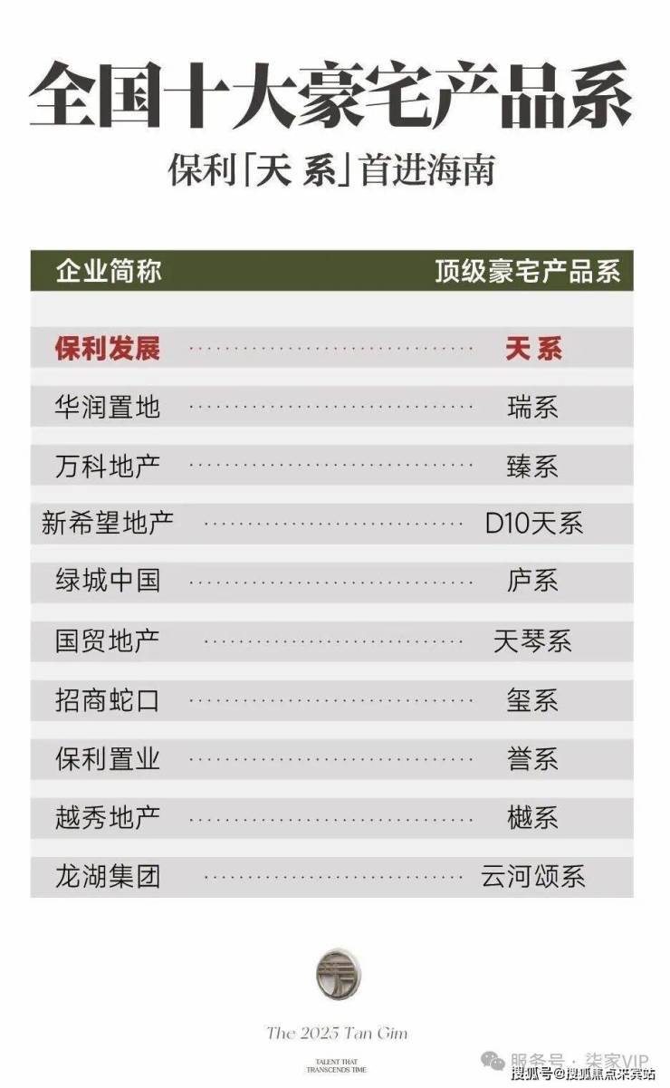 天系,以客户需求为圆心,根据城市基座,提出“甄选城芯、产品打造、服务配置”三个方面的严苛要求,因而成为保利顶级豪宅产品系。且是全国十大豪宅产品系中首位进入海南的。