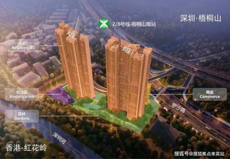 项目位于深港融合中心——罗湖莲塘片区,兼具城市中心繁华与山海生态景观,距离地铁2号线/8号线梧桐山南站约500米,罗沙路首排位置,占地面积14760.61㎡,总建筑面积143593㎡,可售产品为75-150㎡2-4房住宅,总户数756套。【区位价值】莲塘作为《深圳市罗湖区国民经济和社会发展第十四个五年规划和二〇三五年远景目标纲要》中重点规划和推进的片区,将会是未来五年罗湖建设的重点。同时,香港行政长官发布《北部都会区发展策略》,提出“双城三圈”的发展策略。香港将拿出临近深圳的元朗区和北区的全部土地,一共300平方公里土地,设立“北部都会区”。