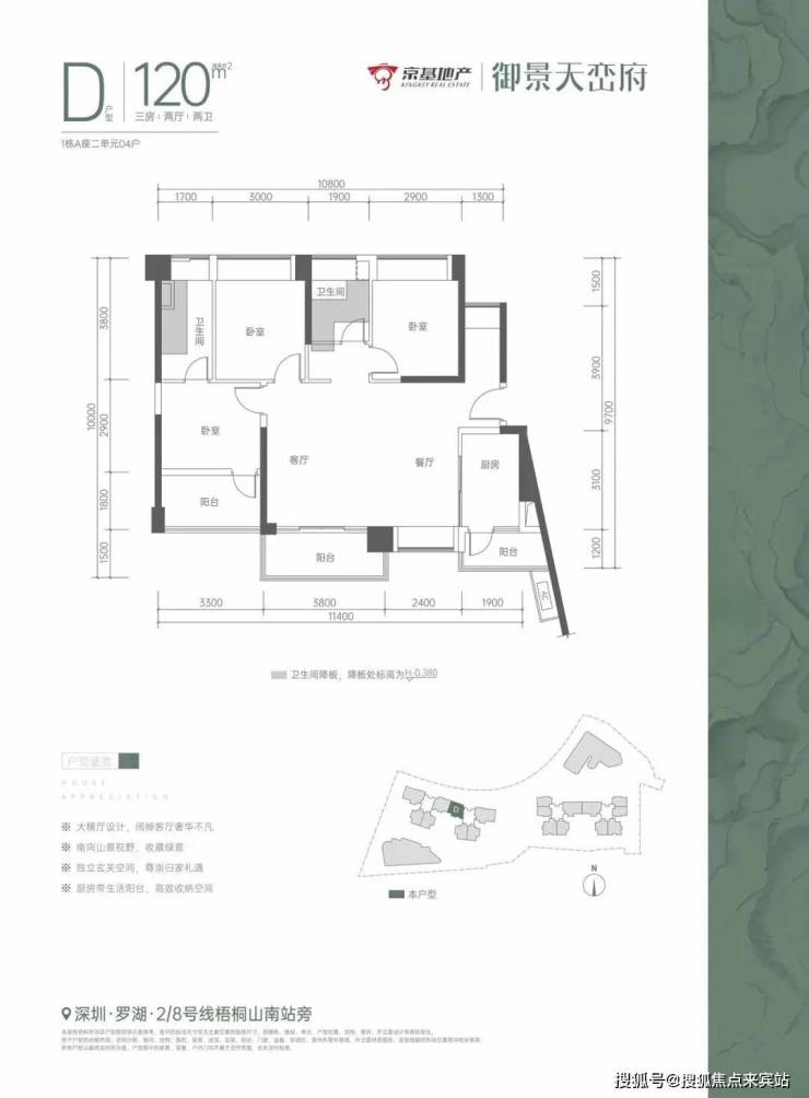 京基作为罗湖城市开发及运营的主导品牌,代表开发项目包括京基100大厦、京基云景梧桐、京基银湖公馆、京基蔡屋围项目、京基水贝项目、京基布心项目、京基罗芳村项目等,比肩招商之于蛇口,华润之于南山。京基品牌口碑爆棚,是城市地标缔造者、城市更新领跑者,京基品质和运营口碑让客户值得信赖。必买真中心——罗湖中心,项目位于深圳正统中心罗湖,城市原点永远是恒定不变的中心。深圳只有关内一个中心区,其他都是功能区。中心区是高配,功能区是标配,中心区永远比功能区更有地位、有政策、有资源、有收益。必买热板块——高燃旧改深圳人多地少,房价靠供应带动热度,热度推动涨幅。福田、南山土地供应已见顶。罗湖过去五年政府投资超过4200亿,超2300万㎡的超级旧改全面推翻重来,是关内三区中土地供应最大的区域。罗湖大手笔投资5790亿布局十大重点片区,加上华润湖贝/京基水贝/木头龙三大标志性旧改陆续入市,罗湖将成为深圳关内最具市场热度和发展前景的区域之一。必买口岸圈——新贵莲塘新莲塘定位为深港融合中心 莲塘口岸开通地铁8号线开通大规模旧改启动香港北部都会区对接驱动助力片区腾飞,成为深港跨境口岸黄金圈新宠。买莲塘的最佳时刻就是现在。必买城央绿——繁城浅山深圳好又贵的房子,在中心区的山里、海边。项目被梧桐山、香港红花岭环抱,家门口就是仙湖公园、弘法寺,速达大小梅沙,城央绿色生态,风景、风水极佳,每一口呼吸都稀缺而昂贵。必买地铁口——高效通勤项目距离地铁2/8号线梧桐山南站约500米,3站莲塘口岸,7站大剧院,工作/生活/出游方便快捷。必买名校房——教育无忧项目位于罗湖第一梯队名校学区,周边汇聚罗湖外语初中学校、仙桐实验小学及自带6班幼儿园等全龄段一站式教育资源。必买优配套——繁华无限「5分钟」车行速达莲塘商业圈/壹海城,「15分钟」车行可达罗湖“金三角”商圈,汇聚KK MALL、万象城、大剧院、东门步行街、国贸天虹等,吃喝玩乐应有尽有。必买高性价——以小博大项目坐拥双向山景视野,超1:1车位比,配套无边际中央泳池和私家架空层花园,打造的是让更多人向往的绿色生态与便捷高效融合的优尚居所。作为2022年罗湖最具性价比的山居新盘,项目推售的建面约75-150㎡畔山雅著,全方位满足不同家庭的居住需求。必买好服务——贴心物业疫情时代,优质物业服务成为买房刚性需求。京基物业是国家一级资质物业管理企业,项目业主可尊享京基100住宅同等标准物业服务。【总平图】【户型鉴赏】【样板房效果图】