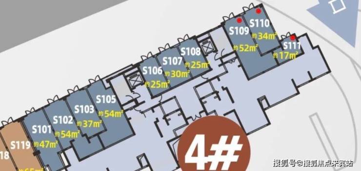🔥4#商铺价值点S101-S111: 面积 17㎡-54㎡商铺特征: