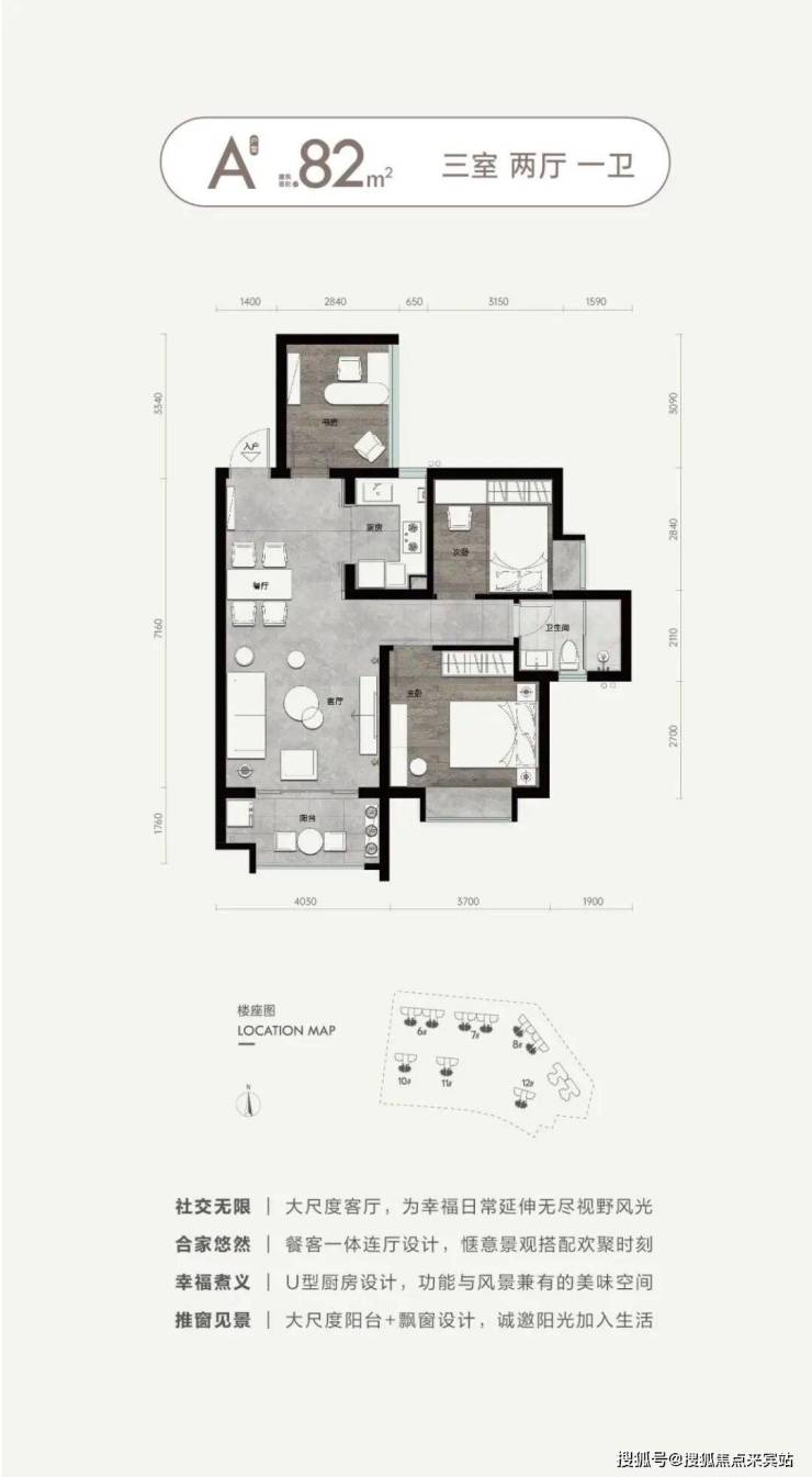 •户型区间:约82㎡(三房两厅一卫)
