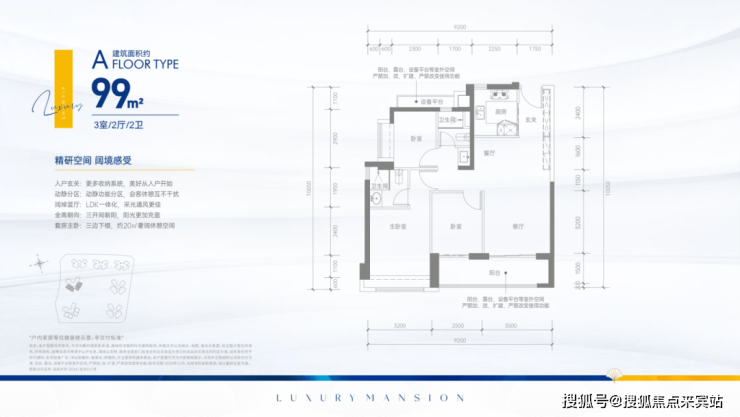 横厅格局,利用率高;餐客一体约6.5米长大阳台,卫生间干湿分离设计;05东南、06西南朝向。