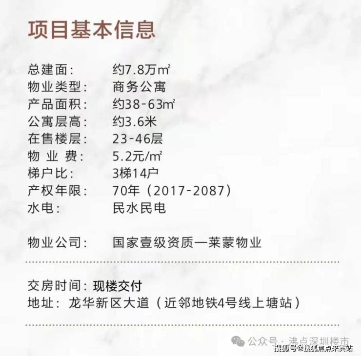 龙华首个玻璃幕墙建筑,约166米天际高度;外立面品质:双银low-e中空玻璃幕墙窗;强强联合:莱蒙品牌开发商联手中国百强物业品牌——莱蒙物业。