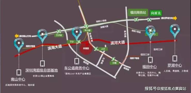 交通上,项目距离地铁7号线上沙站直线距离约350米(地图测距),距离9号线下沙站直线距离约700米(地图测距,据了解未来与商业接驳),两条地铁线均可通往福田、南山、罗湖方向。