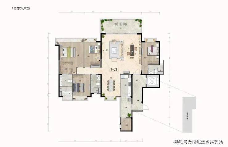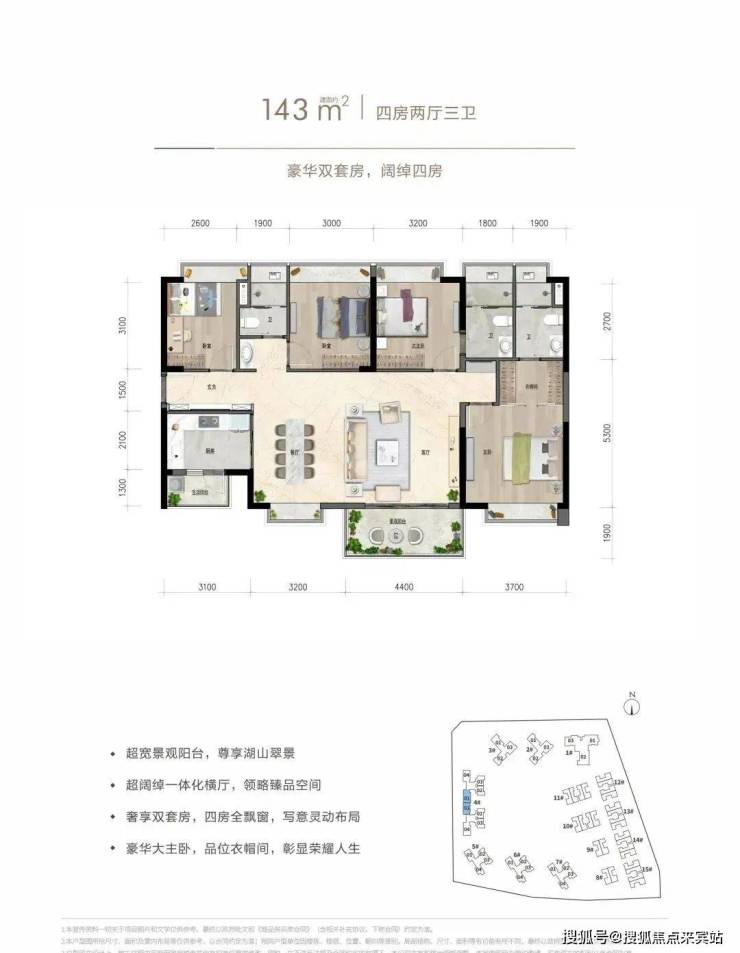超阔绰一体化横厅,彰显荣耀人生。双套房配置,四房顶尖之作。