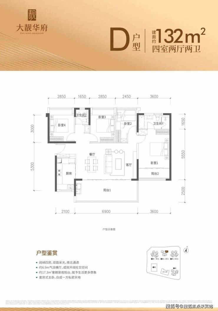 132㎡户型详解:4房2厅2卫