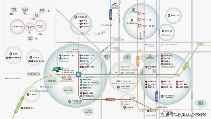 约有13万㎡幸福涌生态公园一路之隔,打造生态和生活结合的场景,承载无限健康生活。遵循可持续发展的原则,整体规划结合交通、商业、住宅等生活聚集地,展现了与城市共融的创新型表达。广州南站ICC让身处其中的人,触手可及多样人生体验。