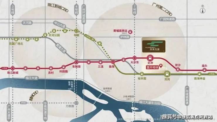 双黄金地铁线:5号线文冲站及13号线双岗站,3站金融城,6站琶洲,9站不换乘直达珠江新城板块