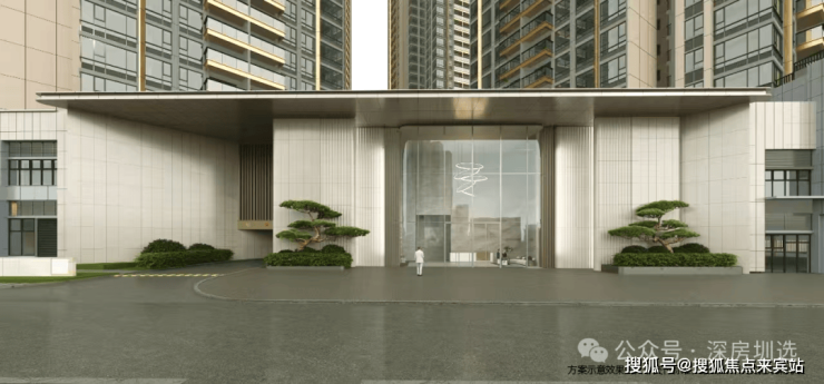 一重:堂——约50m宽小区主入口,酒店标准