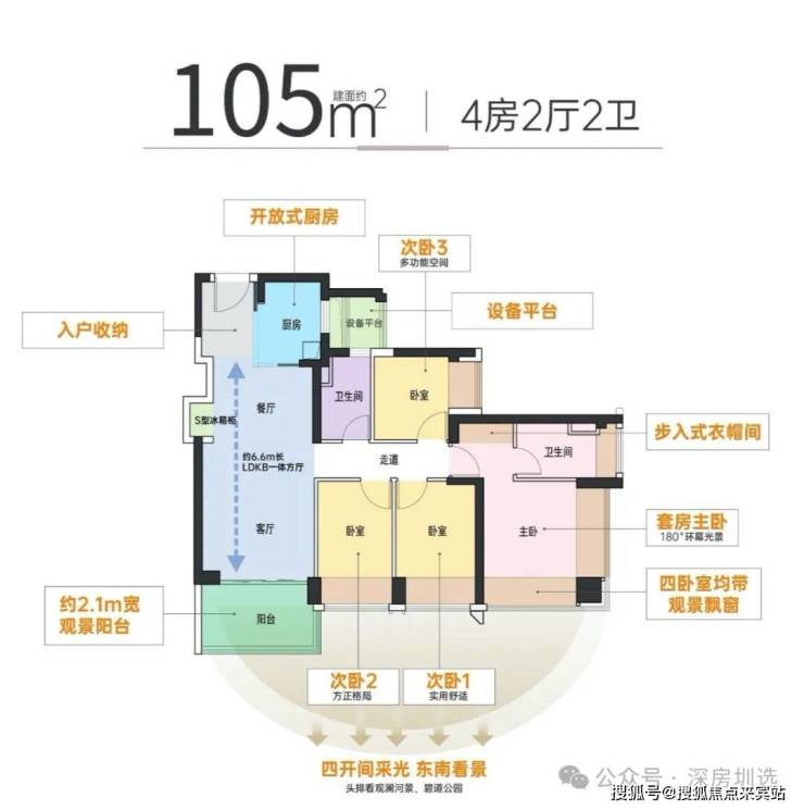 4开间约12m,全东南向采光,视野开阔