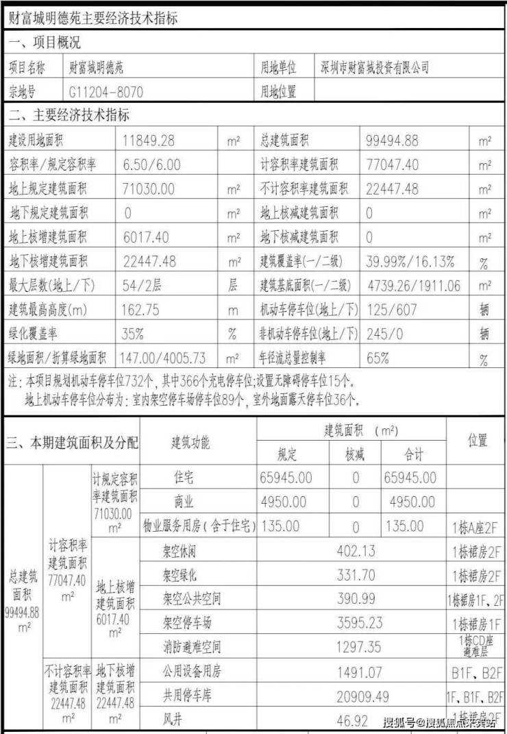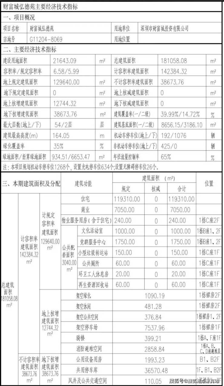 财富城弘德苑:占地面积约2.16万㎡,总建筑面积约18万㎡,计容建筑面积约14.2万㎡,容积率6.58,绿化率35%,共由1栋6座住宅组成,其中1栋A座住宅52F,1栋B/C/D座住宅54F,1栋E/F座住宅32F