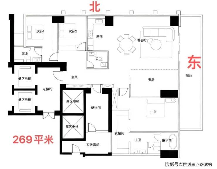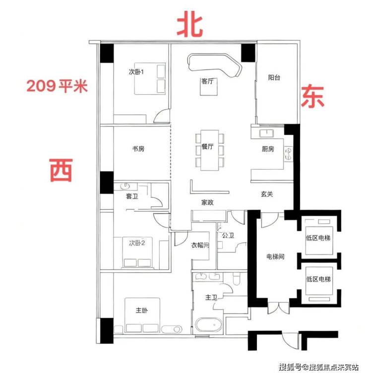 约209㎡四房三卫+家政是北区起步户型,
