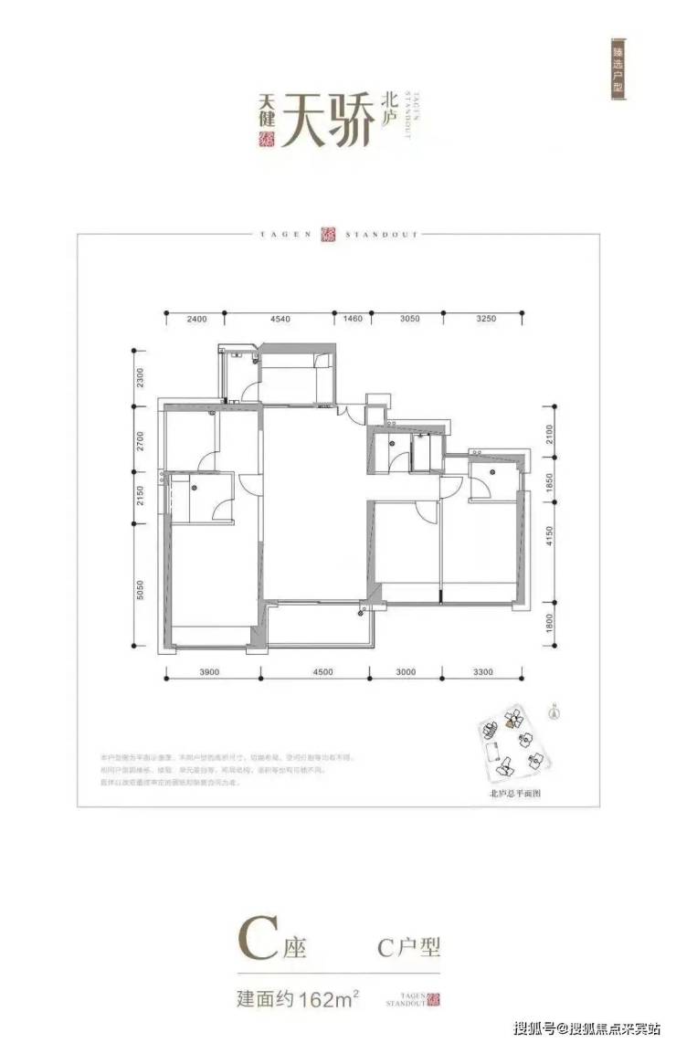 1栋C座:141.7米 44层,共205户,朝南为主,四梯五户,121-162平
