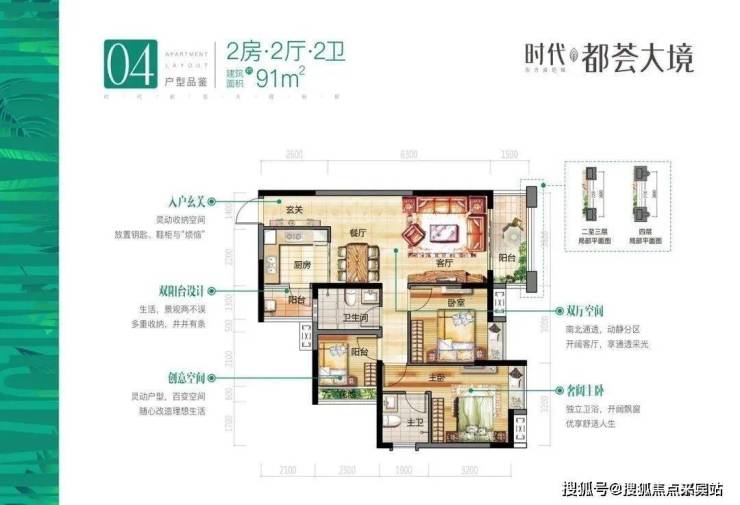 91㎡,2+1房两厅两卫