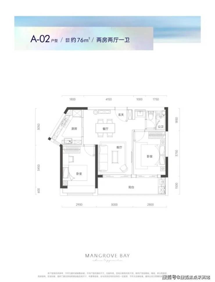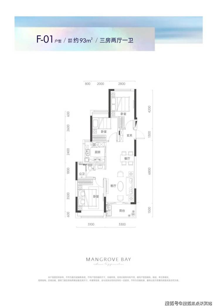 A02户型76平2房2厅1卫:房间和客厅朝南向,采光充足;约5.8米开阔观景阳台,俯瞰红树林自然生态;动静干湿自然分离,生活有序互不干扰。F01户型93平3房2厅1卫:客厅、餐厅连通阳台,自然采光充足;宽景竖厅,空间开阔;主卧独立卫生间,隐私雅奢生活;动静干湿分离。G01户型112平3房2厅2卫:同样拥有客厅、餐厅连通阳台的设计,自然采光充足;全屋飘窗,尽享超大采光面;主卧独立卫生间;动静干湿分离。C03户型134平4房2厅2卫:方正紧凑格局,合理精研每一寸空间;独立私家书房;约6.6米宽阔景观阳台;客厅、餐厅连通阳台;主卧飘窗。