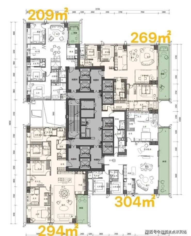 ③超高区58F起(200米以上)是约500-700㎡顶级大平层;