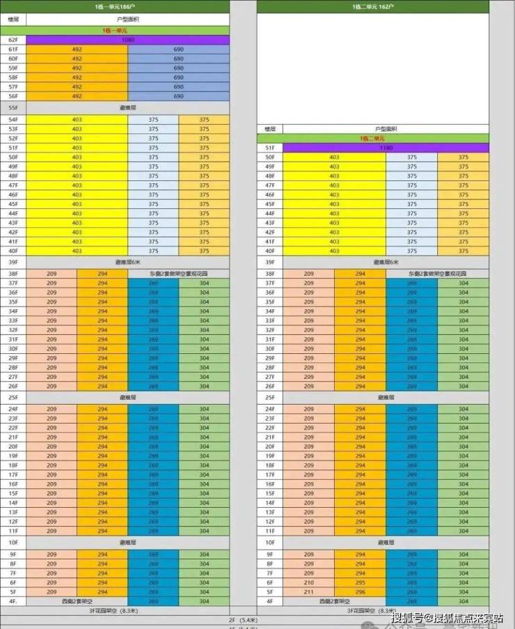 ①低中区5F起(150米以内)是约209-304㎡四房以上大户型;