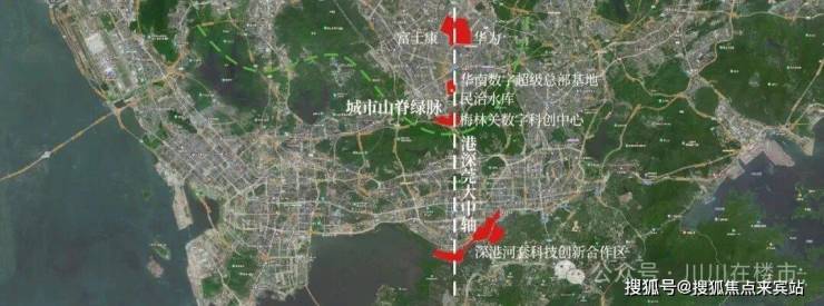 深圳发展中轴,华南数字超级总部基地、星河world总部基地、坂雪岗科技城、北站产融结合示范区、梅彩新一代信息科技,连成深圳中轴含金量置顶的价值金线。