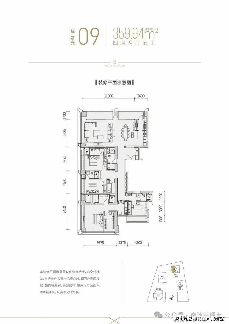 【建面约360平4房全套房2厅5卫】