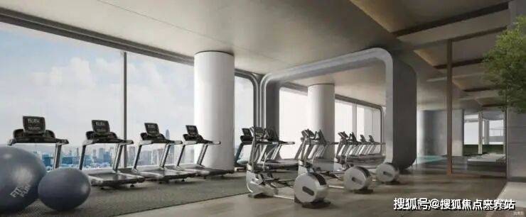 配备丰富器材的云端健身中心,与楼下绿意掩映的社区跑道,