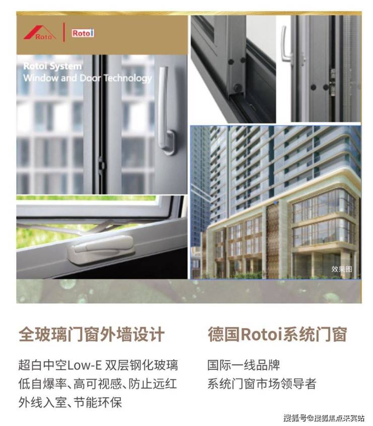 建筑裙楼外立面运用花岗岩石材、金属装饰线条,营造出精致、高贵、典雅的品质。外立面采用德国“Rotoi”系统门窗+组合式单元窗,双系统设计,结合铝板装饰线条,以高端公共建筑设计手法,打造出浑然一体的类幕墙现代建筑立面效果,成为区域“长青”建筑。