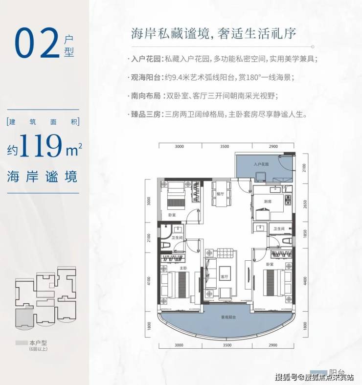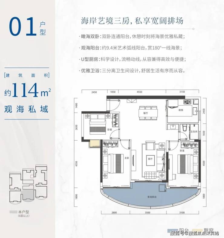 户型:57-114㎡二至三房山海高层