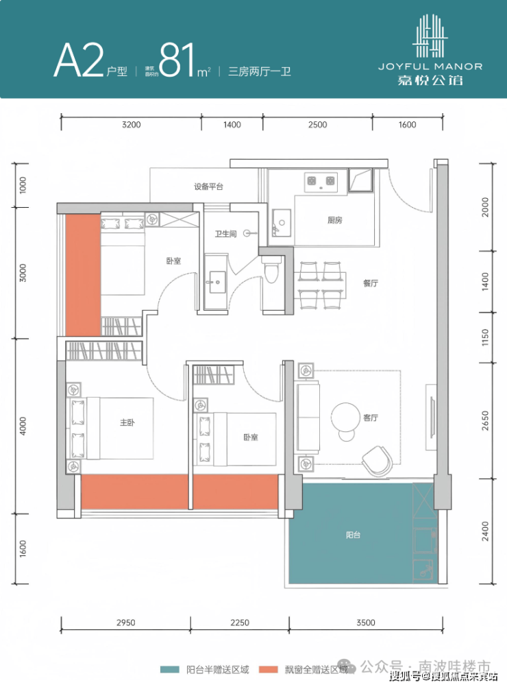 竖厅格局,客厅3.6米开间,三开间朝南,3个卧室分别做到了主卧14.26㎡/次卧7.81㎡/次卧5.83㎡(含飘窗),客厅出8.67㎡的大阳台,得房率约86-90%(包含赠送),正南朝向。
