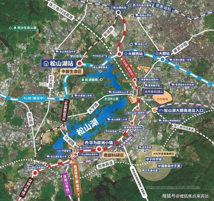 3轨道交通:东莞地铁 R1 线大朗站,莞惠城轨大朗镇站和松湖北站,地铁5号线松山湖北站,多站点接驳,多轨道交汇,湾区出行随心所欲。