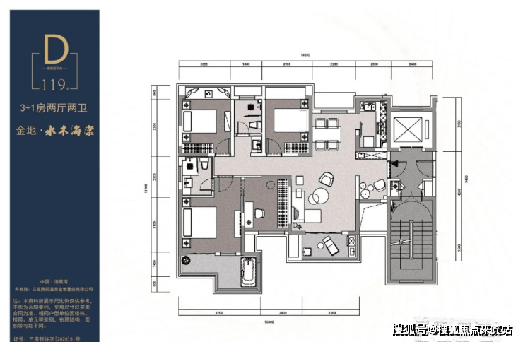 户型信息:主力户型为建面约 106-119㎡的三房,如 106㎡、107㎡的 3 室 2 厅 2 卫户型,以及 119㎡的 3+1 室 2 厅 2 卫户型,均为纯板式结构,一梯两户,南北通透,带有大阳台、入户泡池。此外,还有建面约 140㎡的 4 房户型。