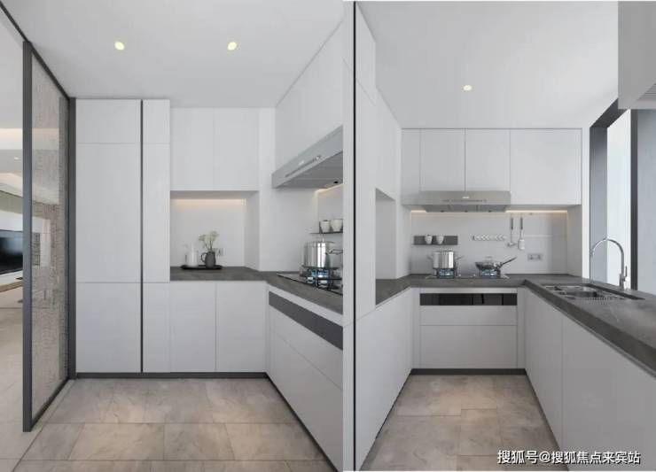 厨房配备嵌入式专用空调,同时配备西门子抽油烟机、燃气灶和嵌入式洗碗机